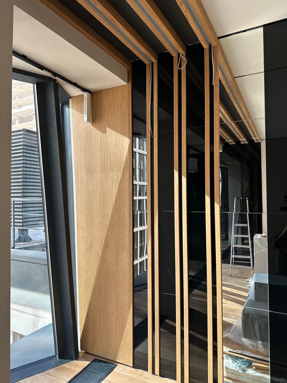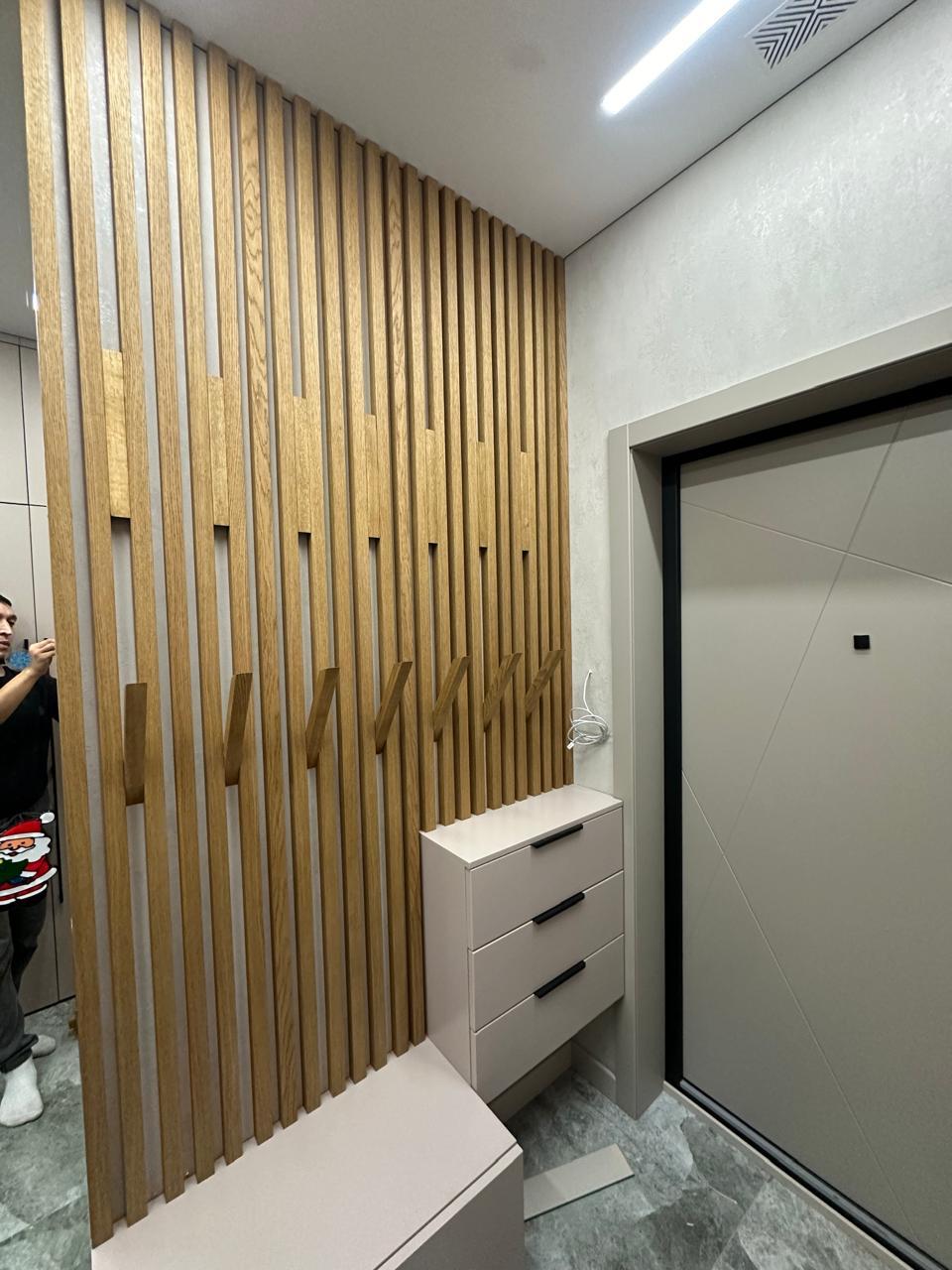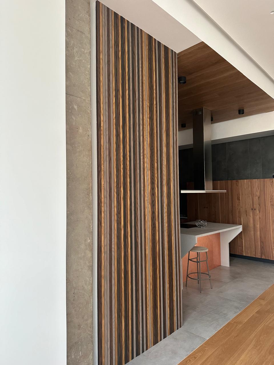 Изящные рейки из шпона на МДФ — воплощение элегантности в вашем интерьере. Тонкие линии натурального дерева создают игру света и тени, превращая обычные стены и потолки в произведение искусства. Благородная текстура шпона в сочетании с прочностью современного материала дарит помещению утончённый характер и изысканный стиль.
